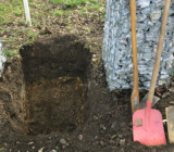 Alle verwendeten Pflastersteine liegen seit einigen Jahren auf der Böschung und waren teilweise schon überwachsen. Die Brombeeren dort machen das Auflesen der Steine zu einer dornigen Arbeit.